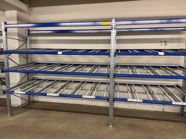 2 Felder Durchlaufregale für Kisten / Kartons, Bereitstellregal / Röllchenregal, Bito – gebraucht – :