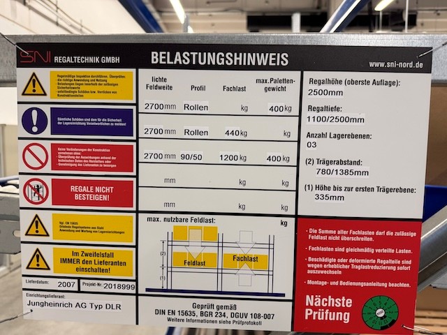 Pro 2,70m Feld = 3 Kanäle für Paletten