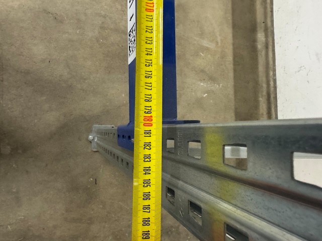 und 2 Felder ca. 1,80m Breite: 2 Ebenen für Palette und 3 Ebenen mit Durchlaufebene