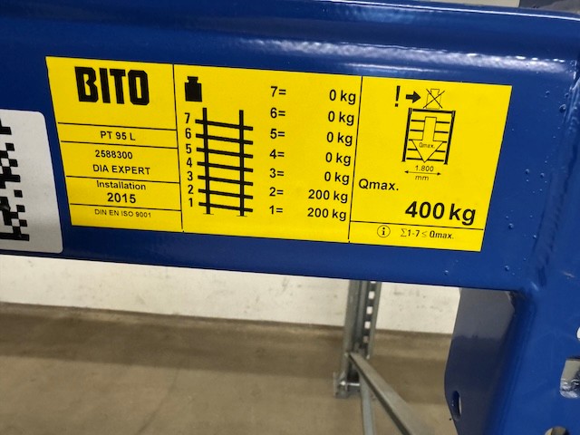 3 Felder Palettenregal mit 4 Ebenen Durchlaufregale für Kisten / Kartons, Bereitstellregal / Röllchenregal, Bito – gebraucht – :