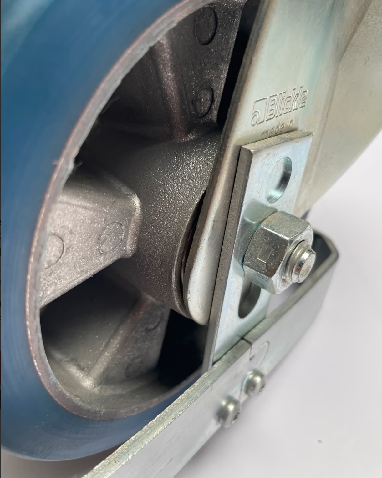 Fußschutz aus Stahl, Schwerlast-Rad mit Polyurethan-Laufbelag Blickle