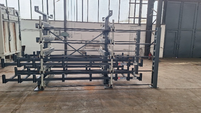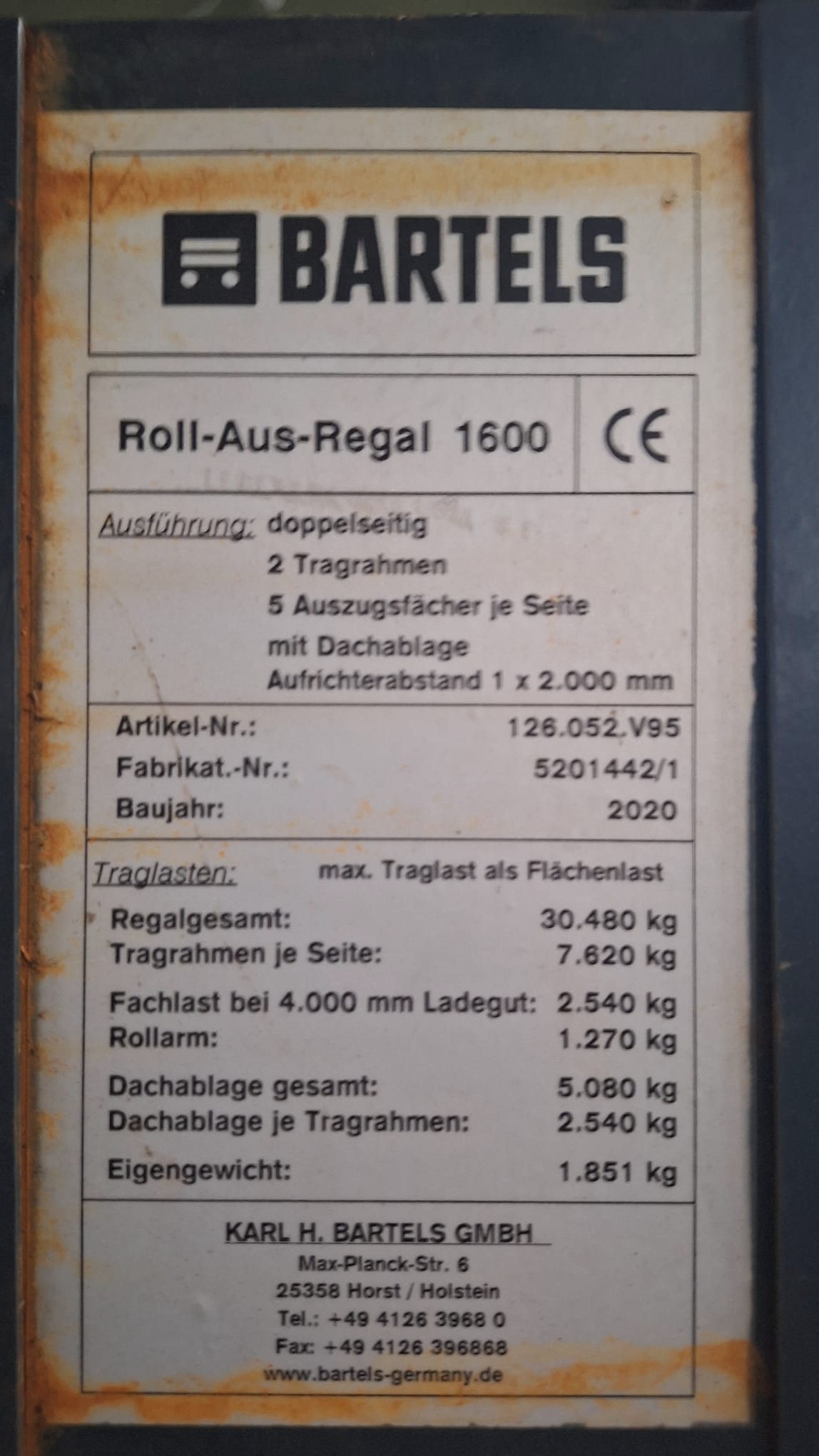 doppelseitiges Roll-Aus-Regal 1600, Bartels – gebraucht – :