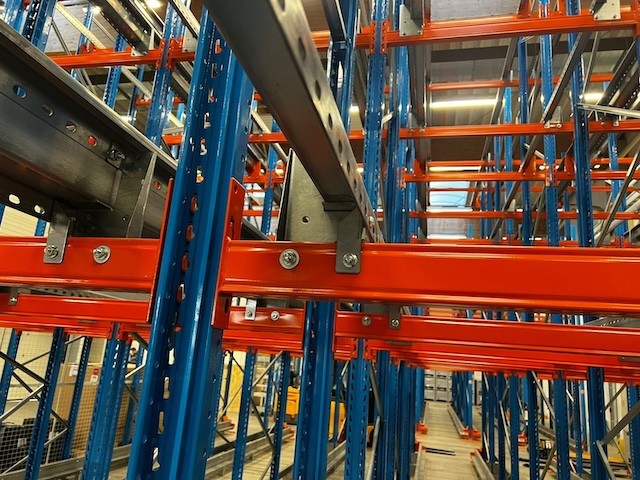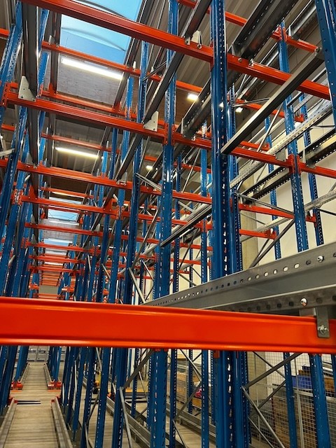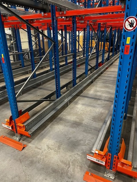 Radio Shuttle Palettenregal, 2 Blöcke a 312 Stellplätze (Gesamt 624 Plätze), max. Palettengewicht 1.000kg , für Euro und Industriepaletten, 3 Stk. Shuttles Stow Atlas 3.1 – gebraucht -: