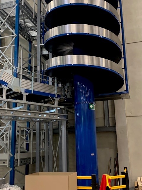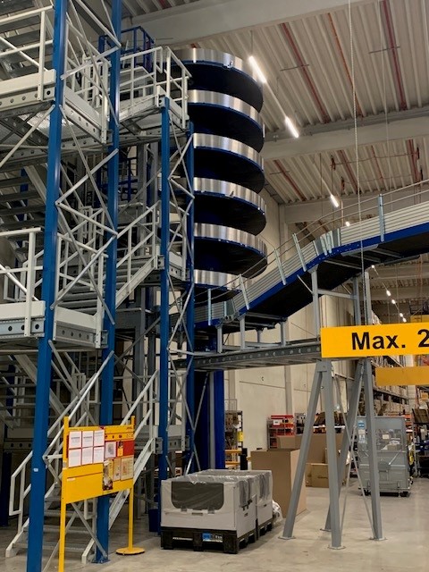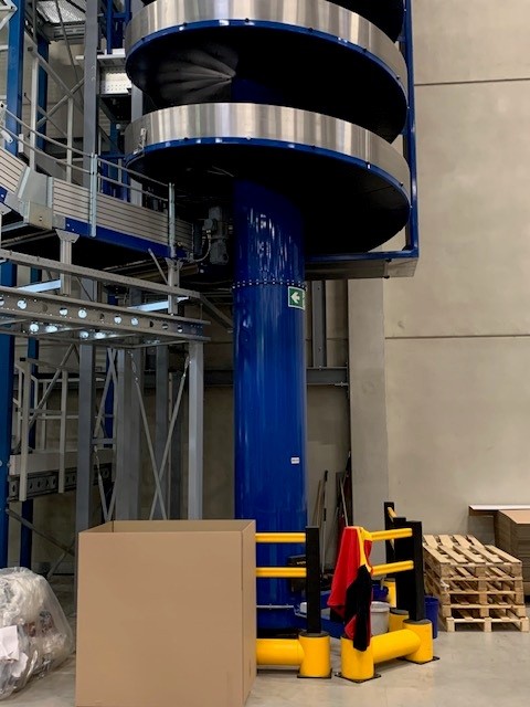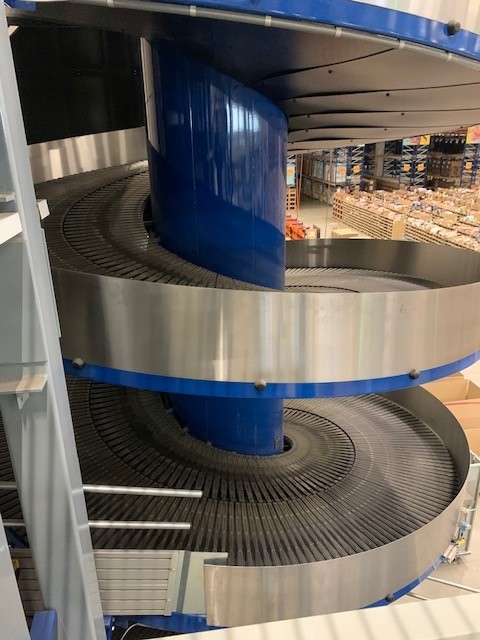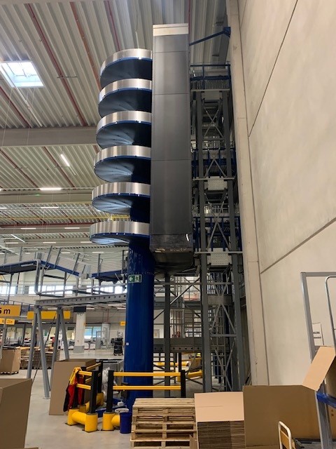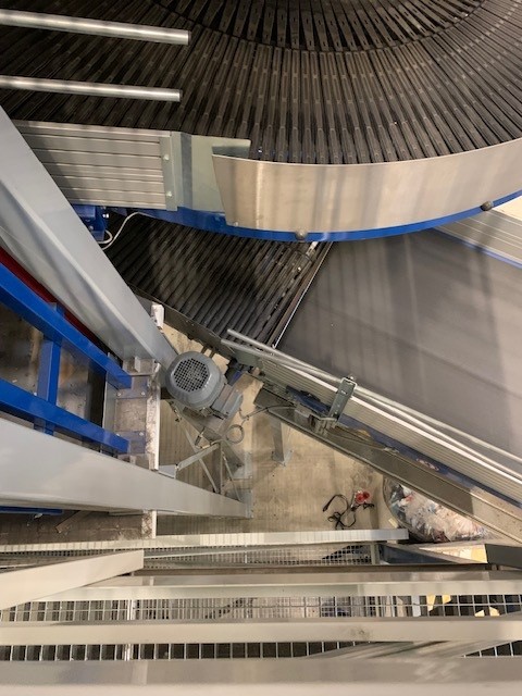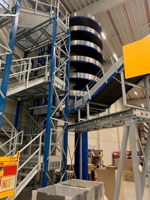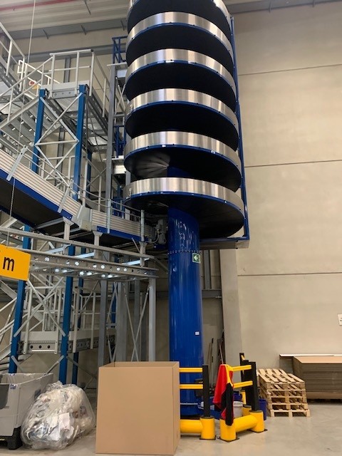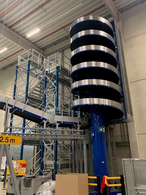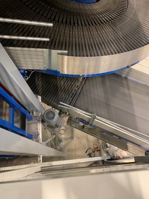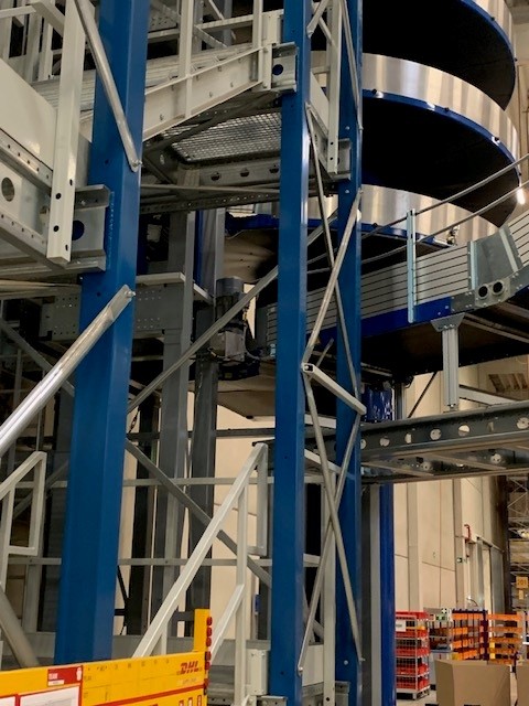Es wurden aus dem Picktower von der Etage 1, 2 und 3 die Kisten / Karton runter und dann auf ca. 3m Höhe rüber gefördert zum Sorter